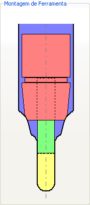 Montagem da Ferramenta — Essa área exibe as porções definidas da montagem da ferramenta além do perfil do suporte.