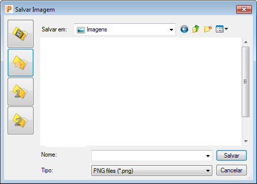 Você pode salvar as imagens como um arquivo PNG (*.png), JPEG (*.jpg) ou Bitmap (*.bmp).