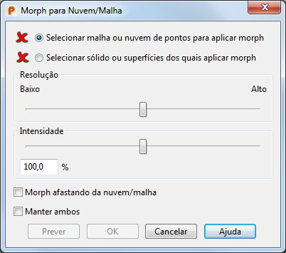 - Clique na guia Editar > painel Morph > Nuvem/Malha para exibir a caixa de diálogo Morph para Nuvem/Malha.