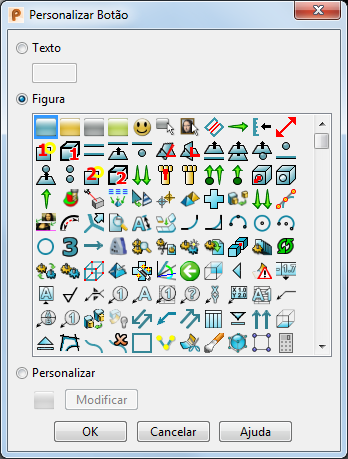 Personalizar — Selecione esta opção para ativar o botão Modificar. Clique no botão Modificar para editar a imagem selecionada na caixa de diálogo Personalizar Imagem antes de adicioná-la a uma barra de ferramentas.