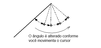 Selecione uma linha. Um ângulo elástico é exibido da extremidade selecionada da linha até o cursor. À medida que você movimenta o cursor do mouse, o ângulo elástico muda: