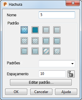 Para cada um dos padrões de hachura pré-definidos, a cor e o espaçamento (caso não esteja travado) correspondem aos configurados no diálogo Opções.