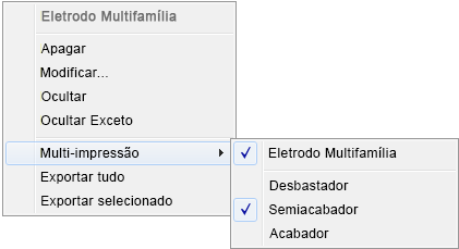 O menu de contexto Eletrodo Multi-Impressão é exibido.