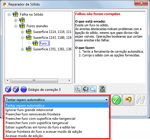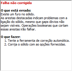 Utilize o Reparador de Sólido para encontrar e corrigir falhas em sólidos. O seguinte é classificado como falha: