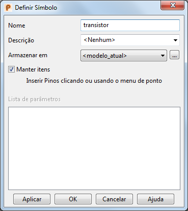 Nome — A definição de símbolo recebe um nome padrão. Altere-o para, por exemplo, transistor.