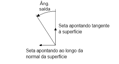 O ângulo de saída é medido entre as setas como mostrado abaixo.