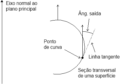 Os pontos das curvas de saída são posições nas superfícies onde o ângulo entre a tangente e a seta se igualam ao ângulo de saída.