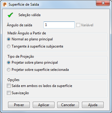 Prever — Exibe a superfície de saída utilizando as configurações atuais no diálogo. Você pode continuar a alterar as configurações no diálogo até que esteja satisfeito com a superfície de saída pré-visualizada.