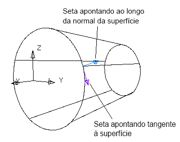 Com Tangente à superfície subjacente selecionado, as setas apontam conforme mostrado abaixo.