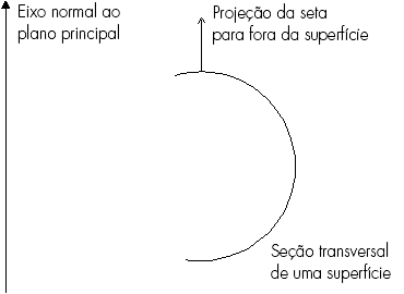 Se você desejar uma superfície de saída que se projete para fora, certifique-se de que a seta paralela ao plano principal aponte para fora: