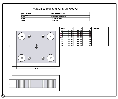 Você pode criar desenhos detalhados de legendas de furo automaticamente a partir de uma montagem. Você pode criar legendas de furo para um design de porta molde como o mostrado abaixo: