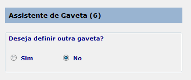 Sim — Retorna à primeira página do Assistente de Gaveta para definir outra gaveta:
