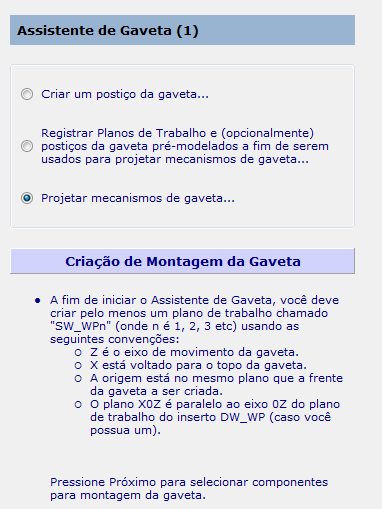 Não — Os componentes na visualização da montagem da gaveta são criados no molde.