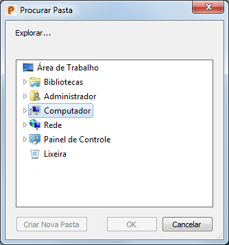 - Clique em Navegar para catálogo para exibir a caixa de diálogo Procurar Pasta: