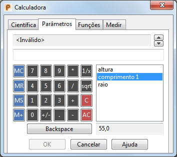 Sempre que uma expressão numérica puder ser inserida utilizando a calculadora, um parâmetro pode ser especificado.