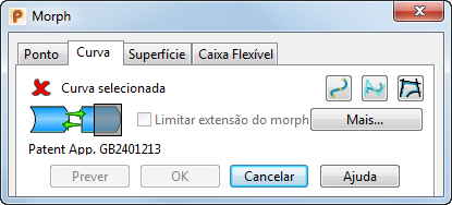 Nota: A funcionalidade de morph por ponto, curva e superfície está sujeita a aplicações de patente. Patente pendente: GB2401213 Altering a CAD model.