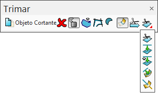 Flyout Trimar. Ao clicar repetidamente nesse botão, os seguintes modos de trimagem são circulados: