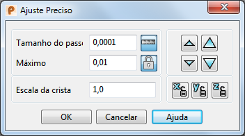 — Clique nessas setas para mover o ponto para cima ou para baixo. Cada clique numa seta pequena move o ponto em X, Y e Z pelo incremento especificado em Tamanho do Passo. Cada clique numa seta grande move o ponto por cinco vezes o incremento especificado em Tamanho do Passo.