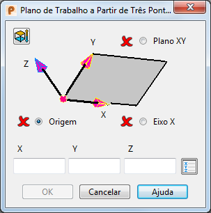 . Você precisa definir as coordenadas para os três pontos. Um erro é exibido se pontos coincidentes forem definidos, ou se todos os três pontos estiverem no mesmo eixo.