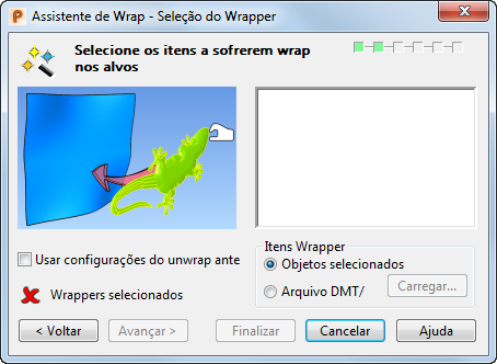 A seleção será exibida na janela de previsão da página Seleção do Wrapper do Assistente de Wrap .