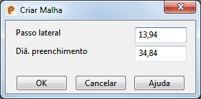 - Passo lateral especifica o tamanho dos triângulos na malha. O valor exibido inicialmente é um cálculo aproximado, baseado no tamanho da malha. Valores menores de Passo lateralresultam em uma malha mais fina e mais suave.