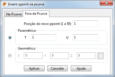 Posição do novo ppoint — Define a posição do novo ppoint na pcurve. Por exemplo, se você inserir 3, o novo ppoint torna-se 3 e os ppoints originais de 3 em diante serão renumerados.