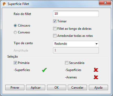 Para fillets mais arredondados, utilize o valor de Amplitude.