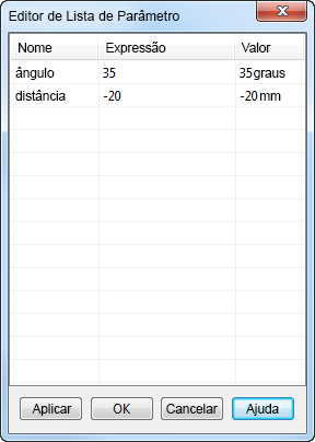 Aplicar — Atualiza o valor de qualquer parâmetro que dependa do parâmetro editado.