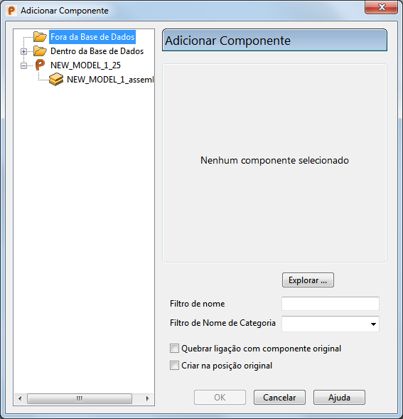 - Explorar — Utilize esse botão para localizar componentes a serem adicionados ao modelo. Esses componentes devem estar em modelos inativos não abertos.