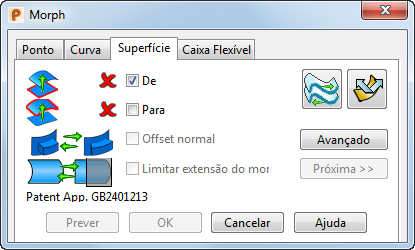 - Selecione Offset Normal para dobrar as superfícies que sofrerão morph para seguir a superfície Para.
