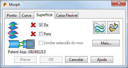 Utilize a guia Superfície do diálogo Morph para selecionar a curva e especificar o morph: