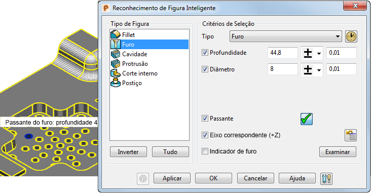 - Clique na guia Sólido > painel Figura > Reconhecimento Inteligente para exibir o diálogo Reconhecimento de Figura Inteligente.
