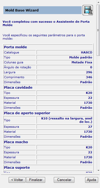 Clique em Encerrar. Aguarde enquanto o porta molde é criado: