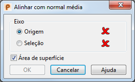 Se Área de superfície estiver marcada, a normal média da seleção será indicada por