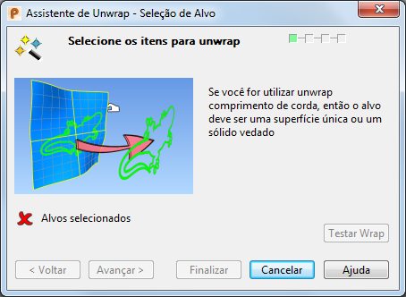 - Clique na guia Arames > painel Da Seleção > Wrap > abrir para Unwrap para iniciar o Assistente Unwrap.