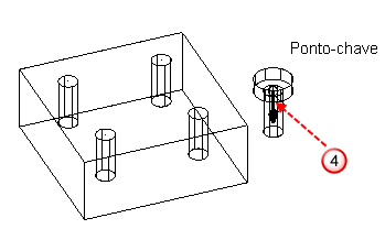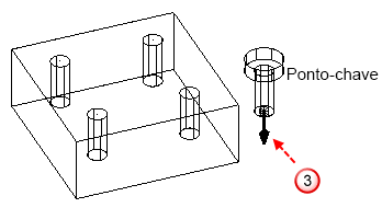 Esse exemplo demonstra a inserção de um componente axial "parafuso" como um componente secundário, em um furo no componente principal abaixo: