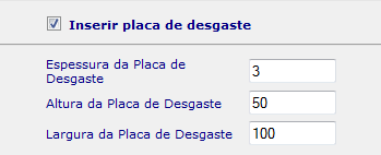 Se desejar uma placa de desgaste em frente ao bloco de encosto, selecione Inserir placa de desgaste e insira a Espessura da Placa de Desgaste, Altura da Placa de Desgaste e Largura da Placa de Desgaste.