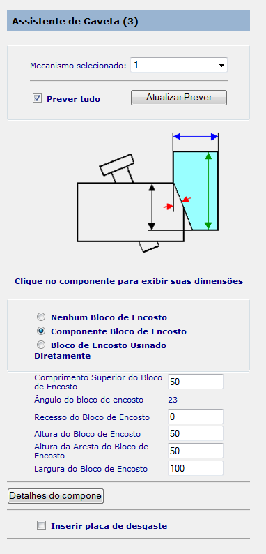 Se Componente de Bloco de Encosto estiver selecionado, insira valores para definir o bloco de encosto.