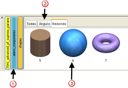 Os componentes numa biblioteca de componente são automaticamente dispostos dentro da janela de forma que apenas a barra de rolagem vertical é necessária.