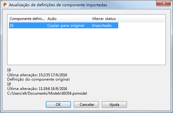 - Copiar para original — Substitui a definição de componente original pela importada.