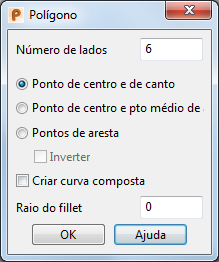 O exemplo abaixo mostra dois pentágonos. O pentágono à esquerda foi criado com um Raio de fillet de 0. O pentágono à direita foi criado com um Raio de fillet de 4.