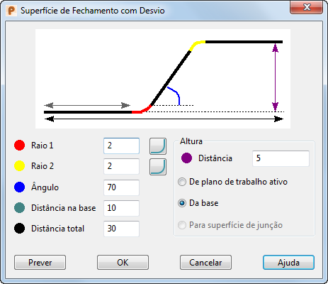 Utilize esse diálogo para criar uma superfície de fechamento com desvio.