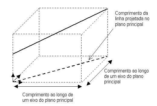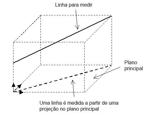 Uma linha é medida a partir de uma projeção no plano principal, mostrada na imagem abaixo.