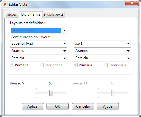 Primária e Secundária — (Somente disponíveis para as vistas Dividir em 2 e Dividir em 4.) Isso controla como as vistas são rotacionadas. Quando você rotaciona uma vista primária, a secundária também rotaciona.