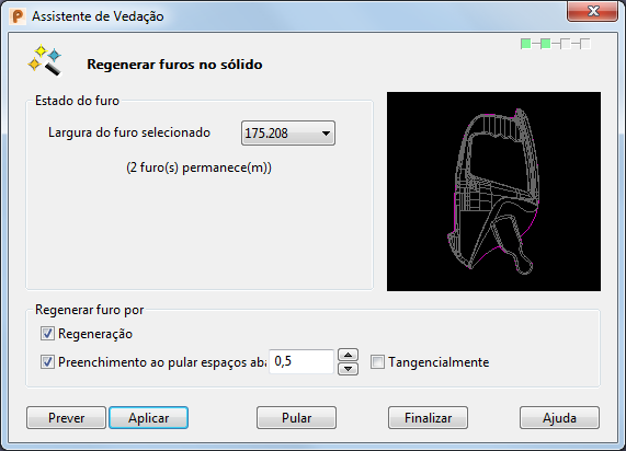 Pular — Abandonar o furo selecionado no sólido e seguir para o próximo maior furo.