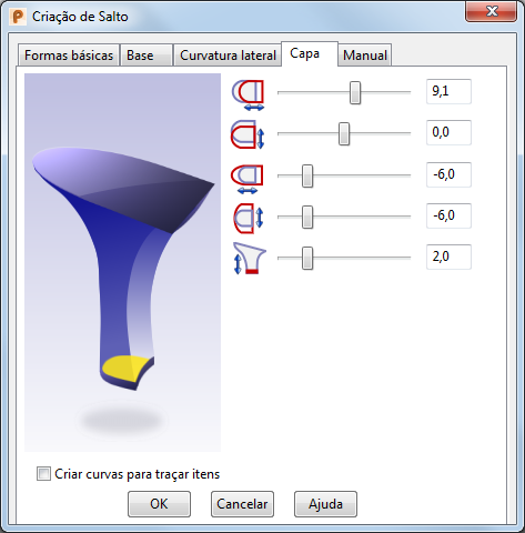 Altura da Capa — Arraste a barra deslizante para modificar a altura da capa do salto.