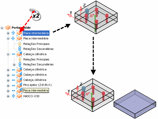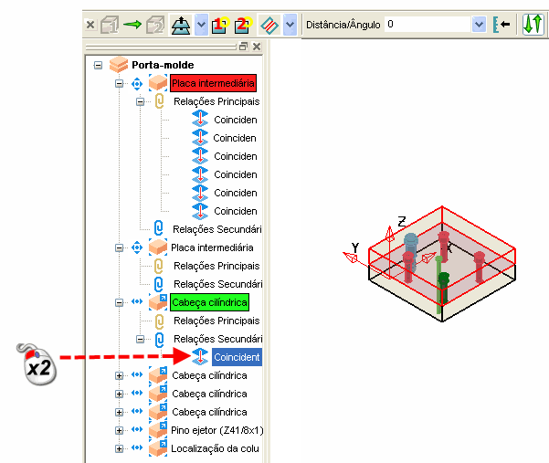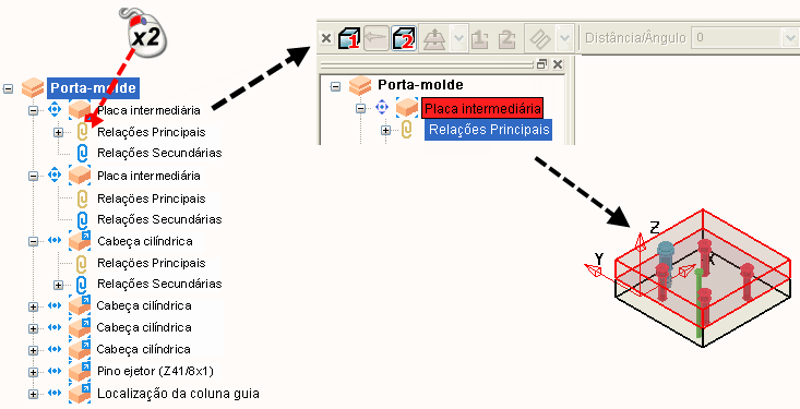 Utilize os seguintes atalhos da árvore de montagem para, rapidamente, selecionar e classificar componentes, adicionar componentes no espaço livre e modificar as relações: