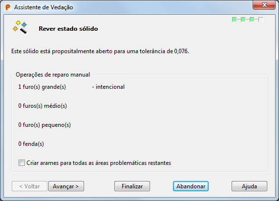 Abandonar — Fecha o Assistente de Vedação, criando quaisquer arames necessários.