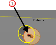 A direção do movimento é alinhada à normal da geometria naquele ponto. A instrumentação gráfica indica a direção de movimento.