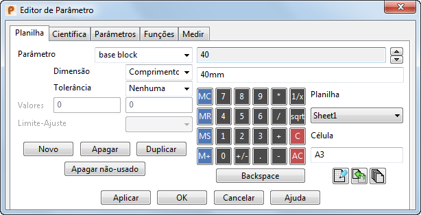 Para modelos que exigem cálculos complexos ou possuem dados específicos associados, esses valores podem ser criados e editados numa planilha Microsoft Excel armazenada com o modelo.